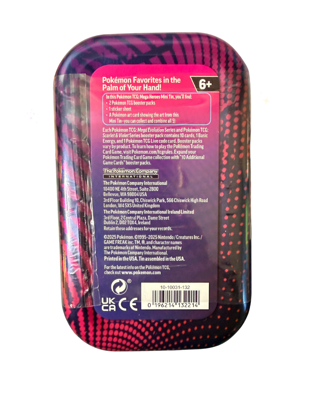 Unleash the power of Mega Evolution with this collectible Pokemon Mini Tin! Inside you'll discover two booster packs—one Mega Evolution and one Destined Rivals—plus an exclusive sticker sheet and an informational card showcasing the featured Pokemon. Join the fun by opening your tin live during our TikTok livestreams for real-time excitement, or grab one to unbox at your own pace. Either way, your tin arrives sealed and ready to reveal hidden treasures. Perfect for collectors and trainers hunting their next favorite card!